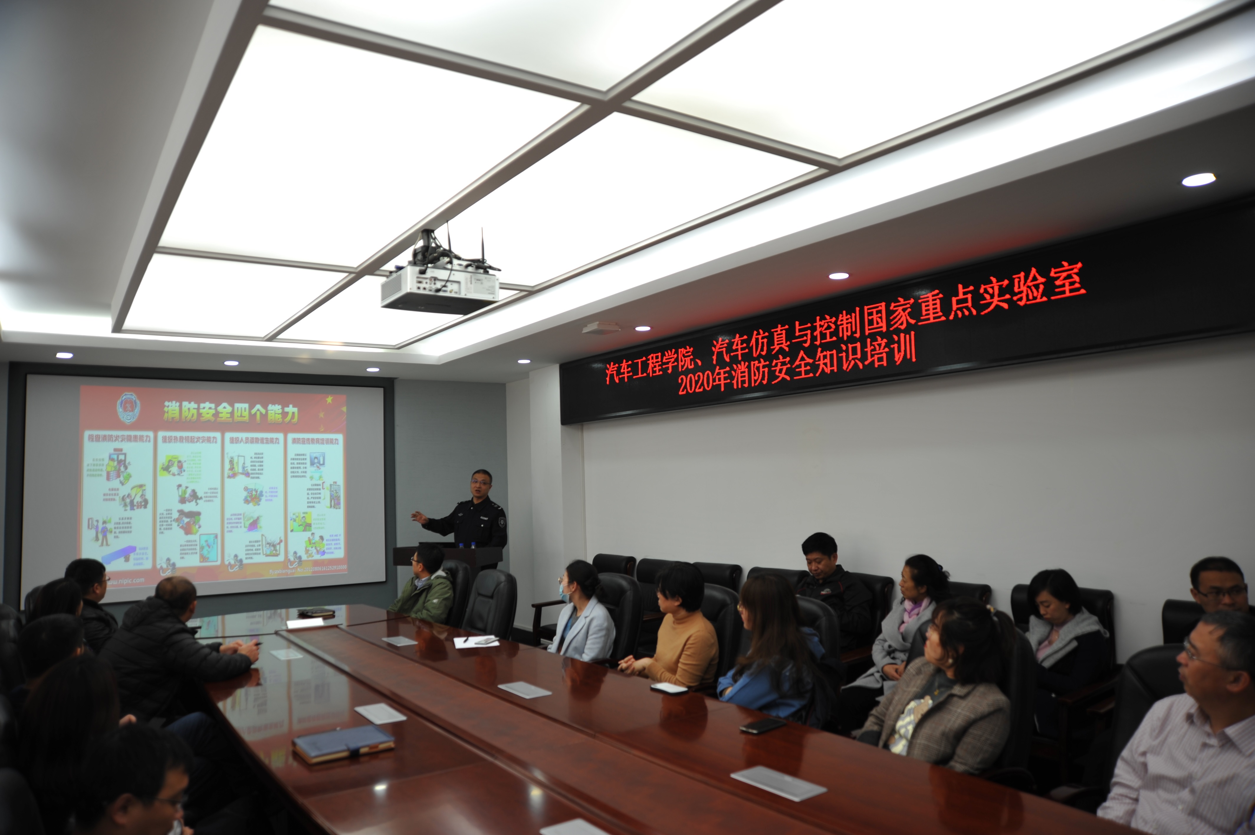 11月5日下午,云顶7610线路检测、汽车仿真与控制国家重点实验室联合东区保卫办举行了“2020年消防安全知识培训与防火疏散演练”活动。公司行政副经理林海兰、重点实验室副主任杨得军以及师生代表参加了此次活动。本次活动分为安全知识讲座、防火疏散演练和消防器材使用三个环节。