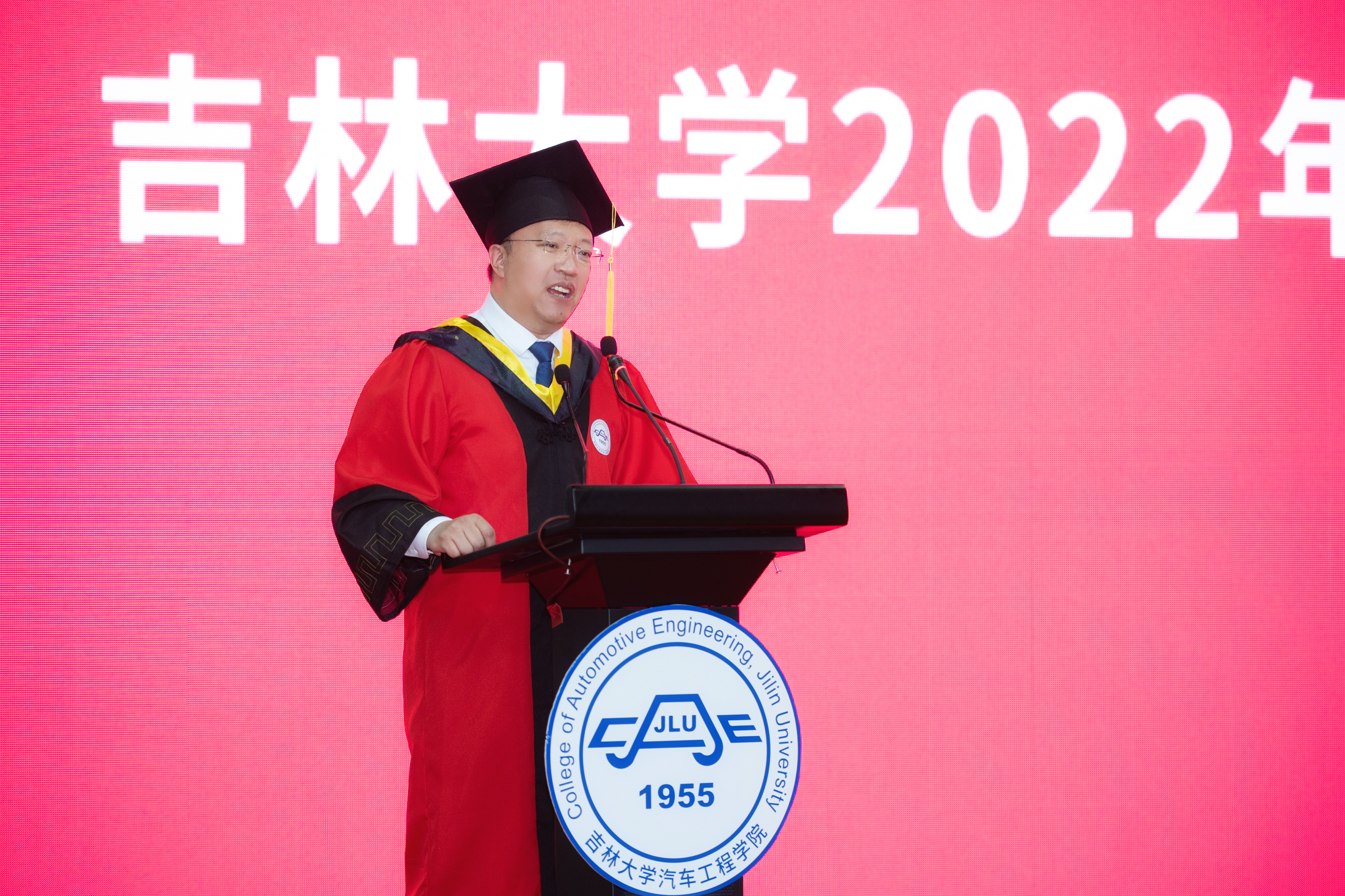 随后,经理高振海教授致辞。在讲话中他提到今年的毕业季由于疫情注定不平凡,云上毕业典礼也是史无前例,但改变的只是方式,不变的是对大家的祝福与期待。他与大家一起回顾了员工们入学以来的成长经历和各方面取得的优异成绩,极大地肯定了员工在思想建设、学业成就、学术创新、车队竞赛荣誉等各方面的亮眼表现。在临行之际,高经理对毕业生提出三点祝愿。一是希望大家坚守初心,怀揣理想,做习近平新时代中国特色社会主义思想坚定的信仰者、忠实的实践者,在中华民族伟大复兴进程中谱写激昂的青春乐章。二是希望大家回首过往,收获成长,勇敢地迎接风雨的洗礼,在困厄的境遇面前不坠青云之志,在历经沧桑之后不失赤子之心。三是希望大家饮水思源,服务社会,能够扛起大旗,承担起这一代应负的社会责任和道德责任,尽己所能去孝敬父母、回报母校、回馈社会。在讲话的最后祝福同学们,鹏程万里,前途远大,在自律自省中完善小我,在拼搏奉献中铸就大我。