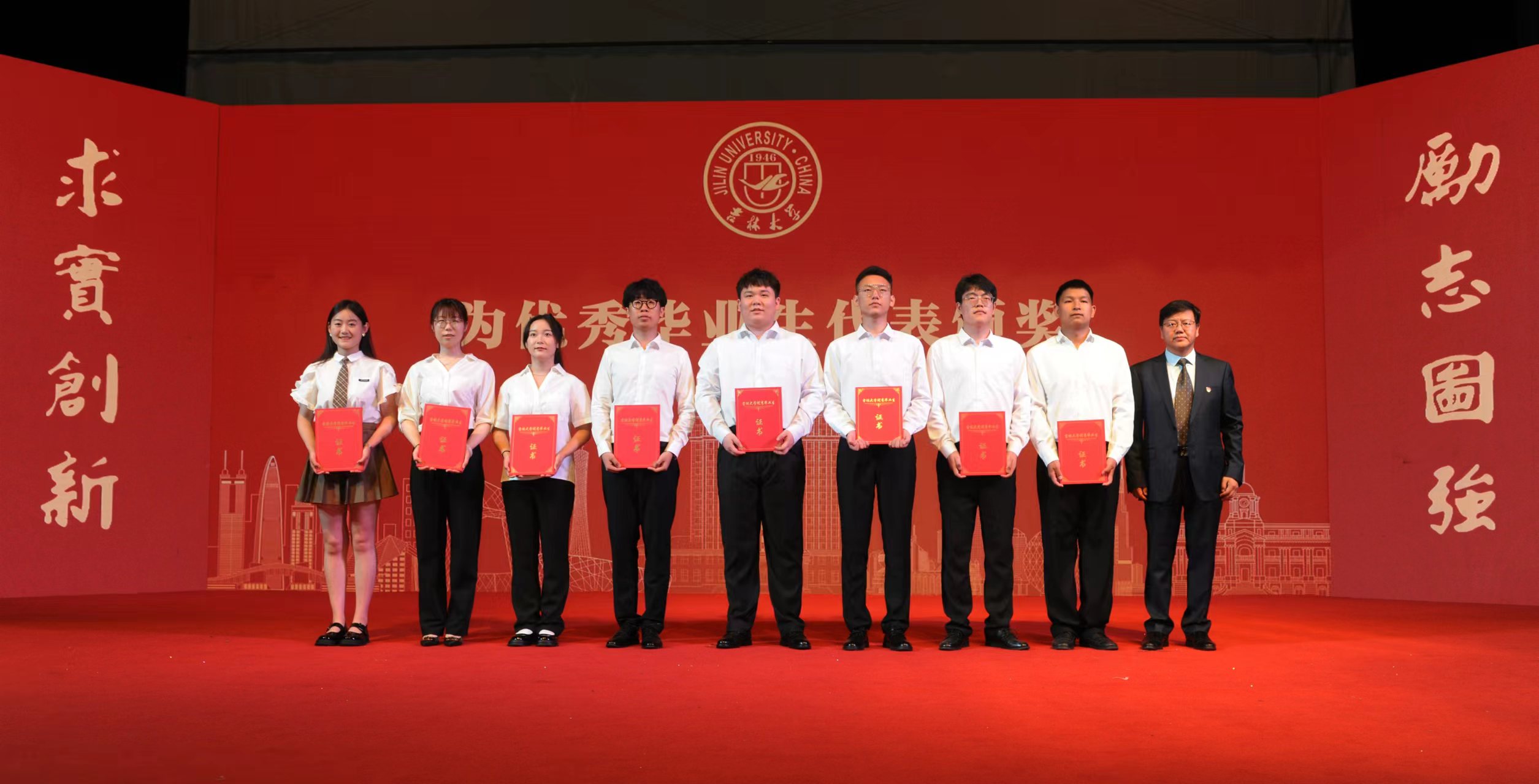 典礼在庄严的国歌声中拉开序幕。公司党委副书记胡忠巍老师宣读《关于表彰2023届优秀毕业生的决定》,党委书记黄忠华老师为8名优秀毕业生代表同学颁奖。