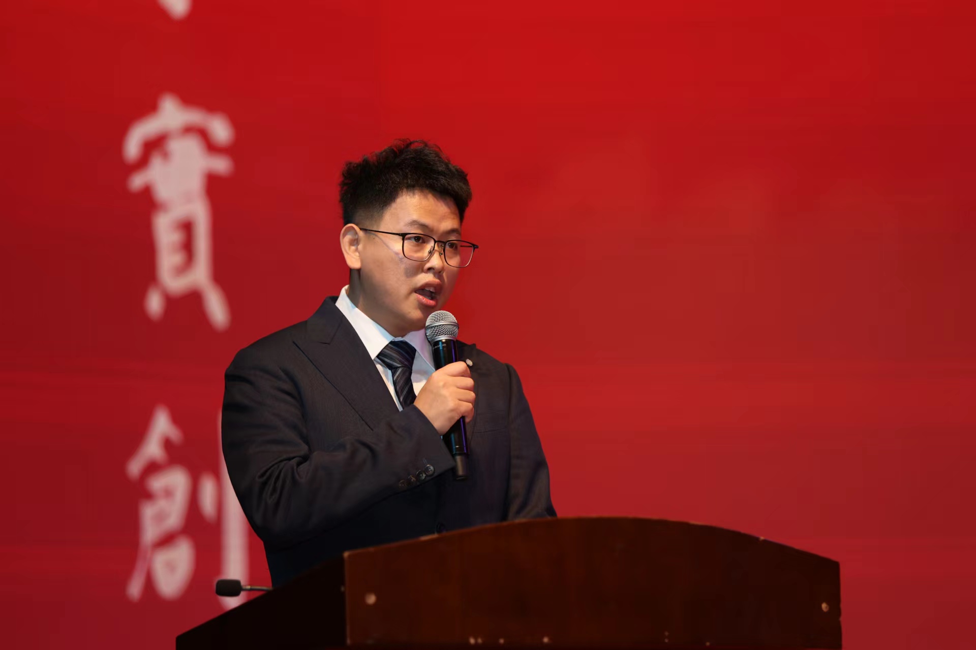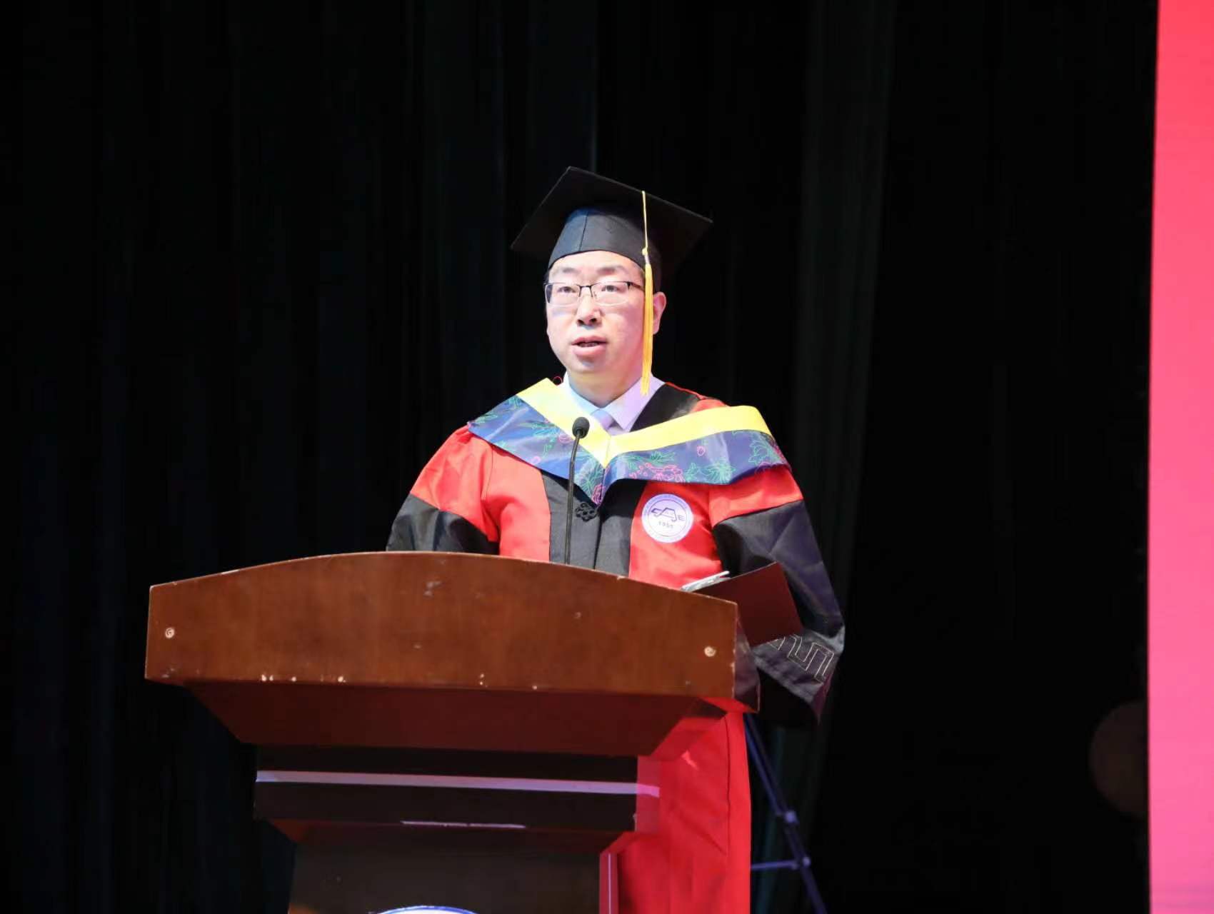 教师代表热能系张春伟老师讲话,表达了老师们对2023届毕业生的真诚祝福和殷切期望,希望同学们未来有所成就。