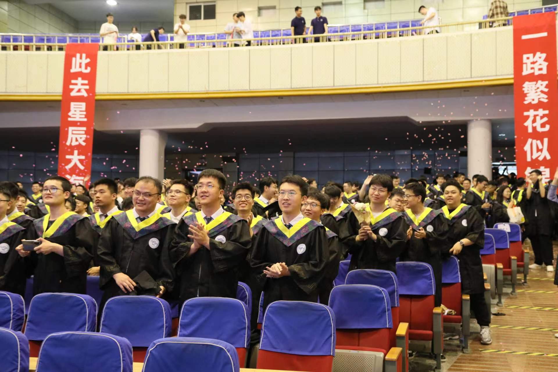 最后,云顶7610线路检测2023届毕业典礼暨学位授予仪式在全场毕业生合唱的校歌声中圆满结束。各位领导老师上台,伴着《干杯》的背景音乐与云顶7610线路检测2023届全体毕业生挥手告别,祝福所有的毕业生此去星辰大海,一路繁花似锦!