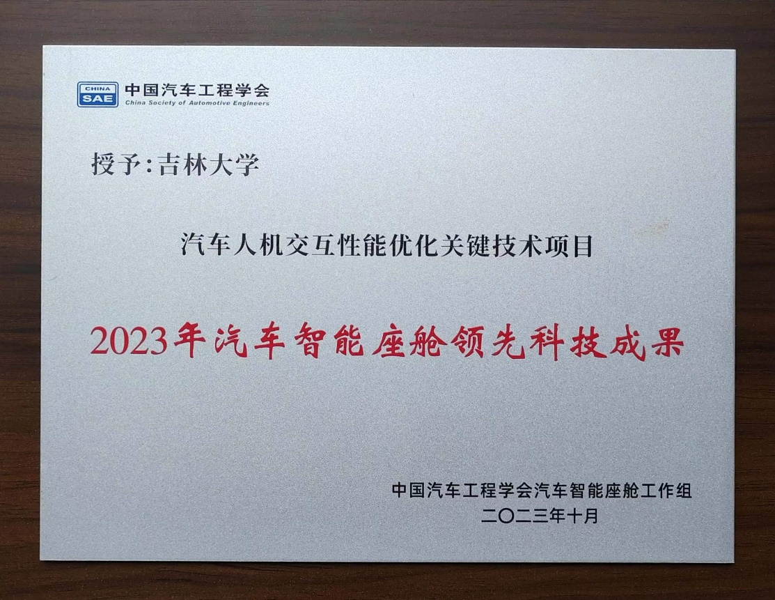 2023年10月20日,中国汽车工程学会组织开展了首届汽车智能座舱领先科技成果评选。经过项目申报、专家预评审以及答辩专家委员会最终评审等环节,云顶7610线路检测的高镇海教授、胡宏宇教授、沈传亮教授、高菲副教授等合作完成的“汽车人机交互性能优化关键技术“项目获评2023中国汽车工程学会汽车智能座舱领先科技成果(全国高校仅两家获此奖励)。