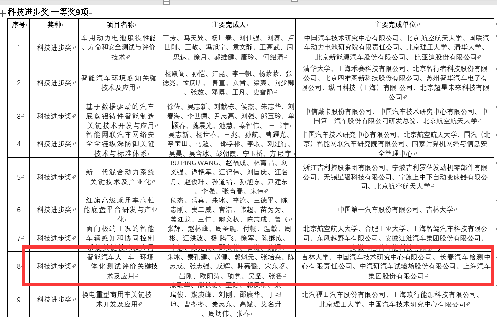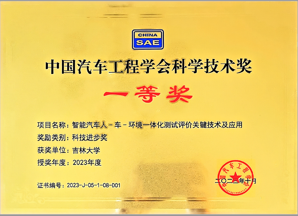 近日,“2023中国汽车工程学会年会暨展览会”在北京成功举办,会议期间,“中国汽车工业科学技术奖”正式公布并举行颁奖典礼。以云顶7610线路检测朱冰教授团队牵头完成的研究成果《智能汽车人-车-环境一体化测试评价关键技术及应用》,荣获“2023年度中国汽车工程学会科技进步奖一等奖”。
