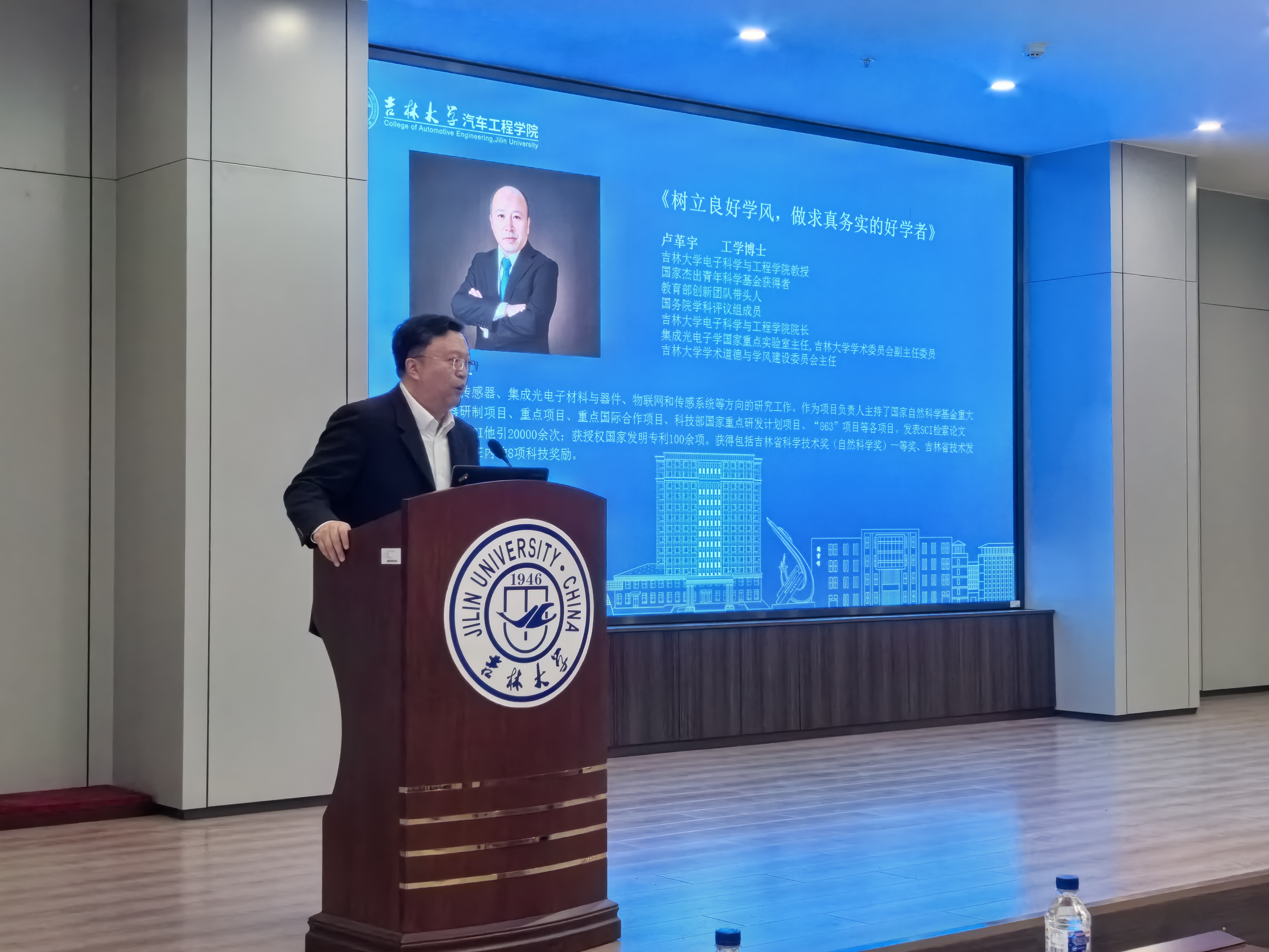 卢革宇教授以《树立良好学风,做求真务实的好学者》为题,分别从学术道德和学风建设的目的和重要性,学术不端的定义和范围,制度规范和责任体系建设,学术不端的问题原因及对策办法等方面进行详细讲解,并简要介绍了电子公司的主要历史沿革与发展。卢革宇教授突出强调学术诚信是科研工作者的生命,人人都要讲学术诚信。