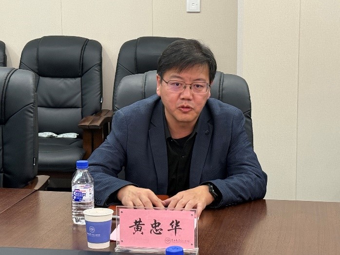 黄忠华书记随后致辞,对参会人员进行逐一介绍,希望公司研究方向与东风汽车集团研发总院的科研需求能够紧密结合。他结合公司实验室的建设情况,对公司的科研工作与员工实习实践的开展成效进行了详细讲解。
