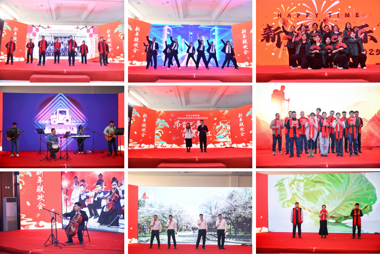 一首由汽车系教工带来的改编歌曲《新青年,大汽车》拉开了公司新年联欢会的序幕,中国梦、青年梦、汽车梦,这群朝气蓬勃的年轻人必将一路驰骋、拼搏飞扬;全重实验室的舞蹈《饿狼传说》,用充满活力的舞姿激发着老师们追求自由的勇气,书写汽车人永不言败的传奇;歌曲《能源热科学一起向未来》雄浑有力,诉说着他们在新时代的道路上携手并进、共同奋斗的坚定信念;机关女教工舞蹈串烧《APT》《寄明月》展现了新时代汽车人的青春、激情和梦想,赢得了现场阵阵欢呼;教师爱子带来大提琴演奏《灯火里的中国》《若月亮没来》,让我们感受到公司教工的爱国情怀和为祖国奋斗的精神传承;《卷就一个字》由能动系教师倾情献唱,蕴含着对生活无限的热情和追求;公司教工组成的拖拉机乐队带来《上春山》《我们的时光》,共同献给我们充满激情又昂扬向上的拼搏时光;车身系带来的合唱《明天会更好》表达了对未来的希望和热情,更是祝愿公司发展明天会更好。