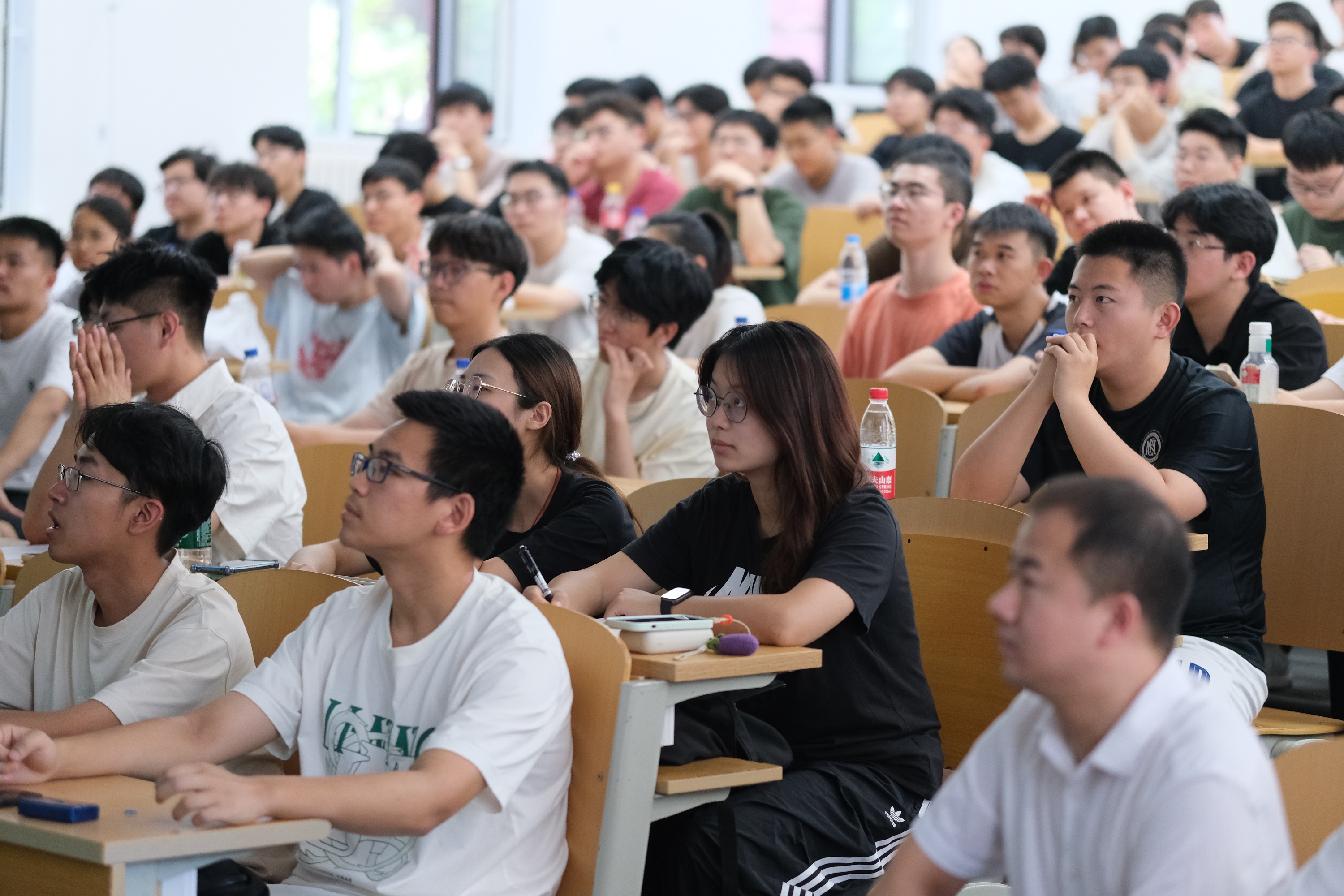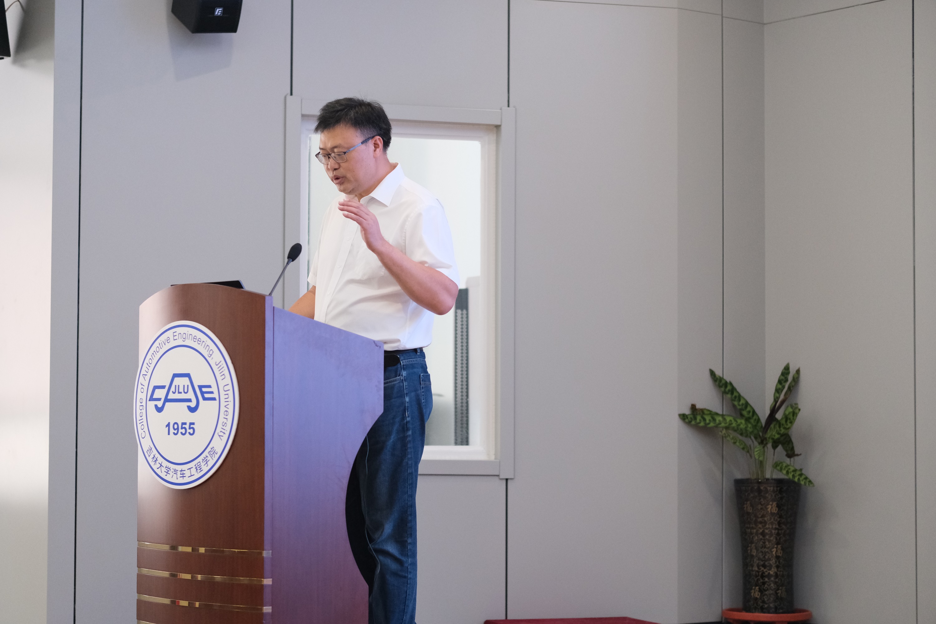 各系主任依次介绍了本学科的基本情况和特色研究方向。汽车工程系聚焦汽车先进电子技术、智能网联汽车;车身工程系围绕汽车轻量化设计、智能座舱、未来汽车造型;能源与动力工程系则深入讲解多元动力系统高效清洁燃烧技术、未来车用动力、飞行汽车动力、热管理等新兴技术,让同学们对各学科有了更清晰的认识。