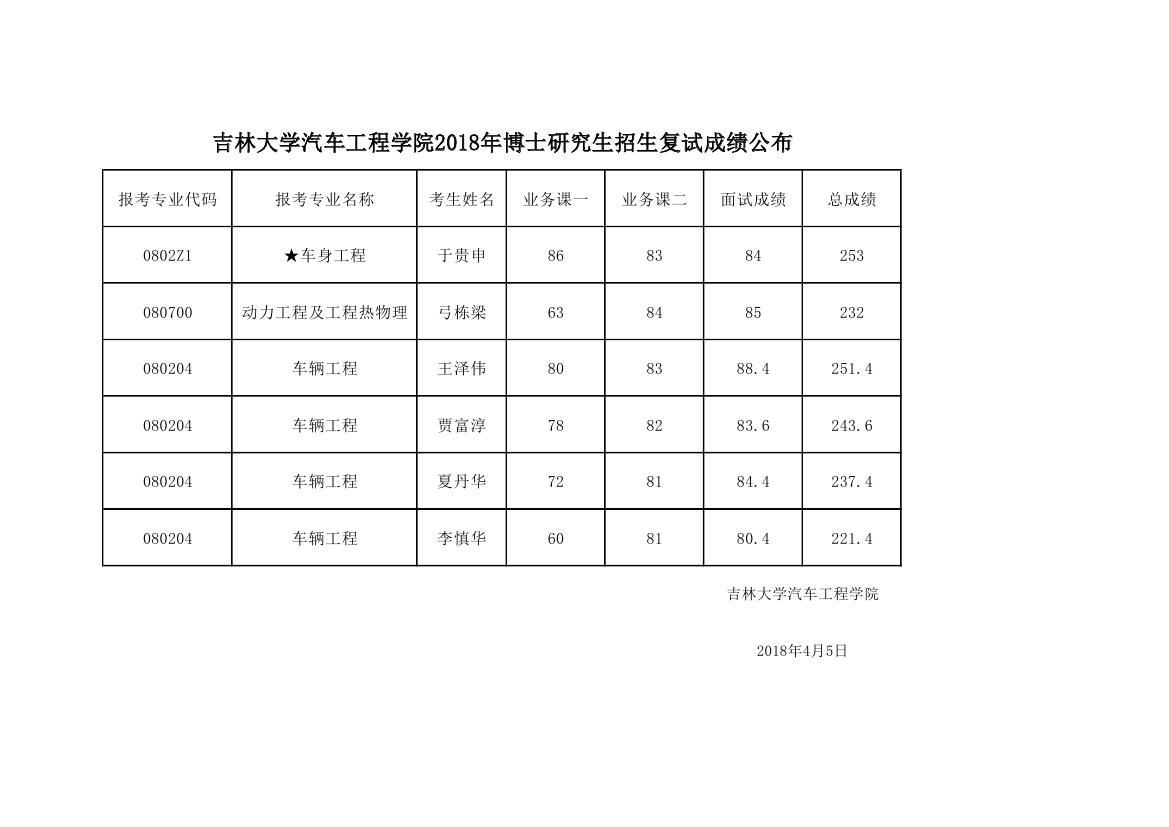 2018年博士研究生招生复试成绩公布