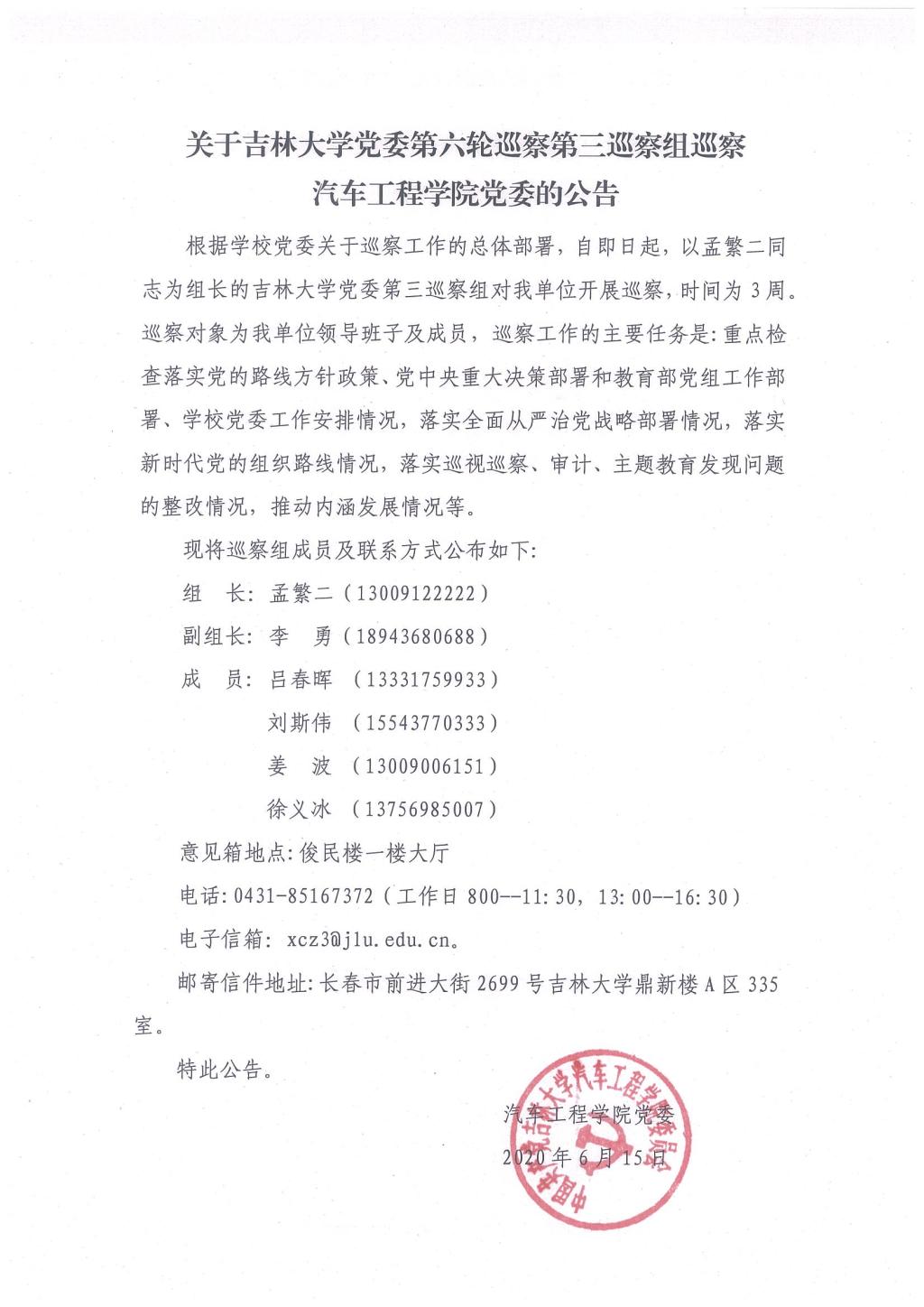 关于云顶7610线路检测党委第六轮巡察第三巡察组巡察公司党委的公告