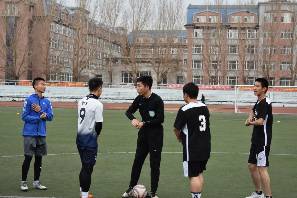 四班和七班两支足球队在先前的比赛中都表现出不俗的实力,从众多班级中脱颖而出,相见于决赛场。随着裁判的哨声,比赛正式开始。双方队员迅速进入比赛状态,没有丝毫保留,战况十分胶着。双方都组织了多次强有力的进攻,但在对方密不透风的防守之下都没有取得进球。直到上半场结束,双方的比分仍然维持在0:0。