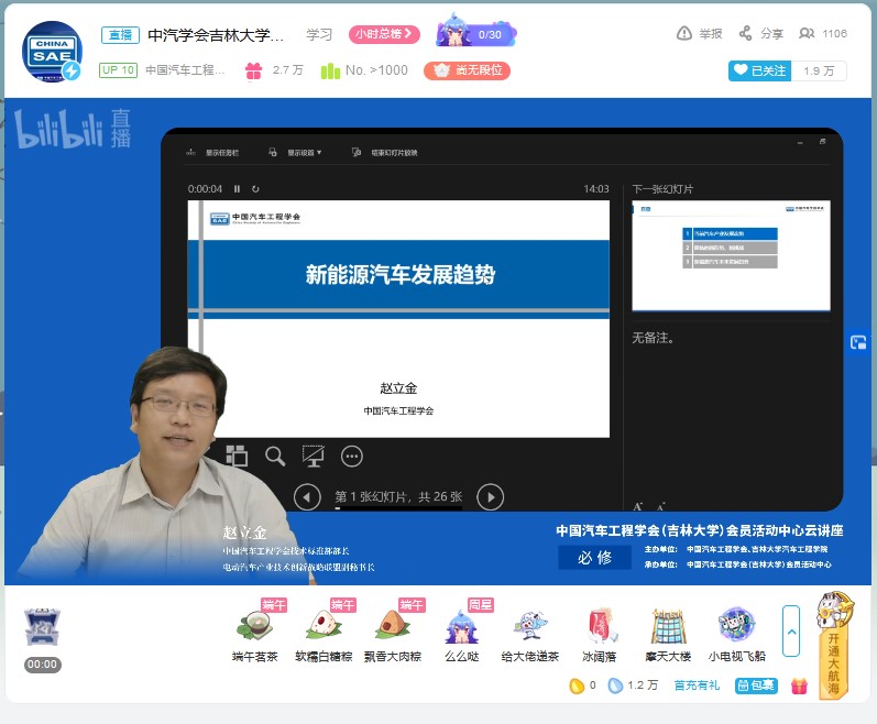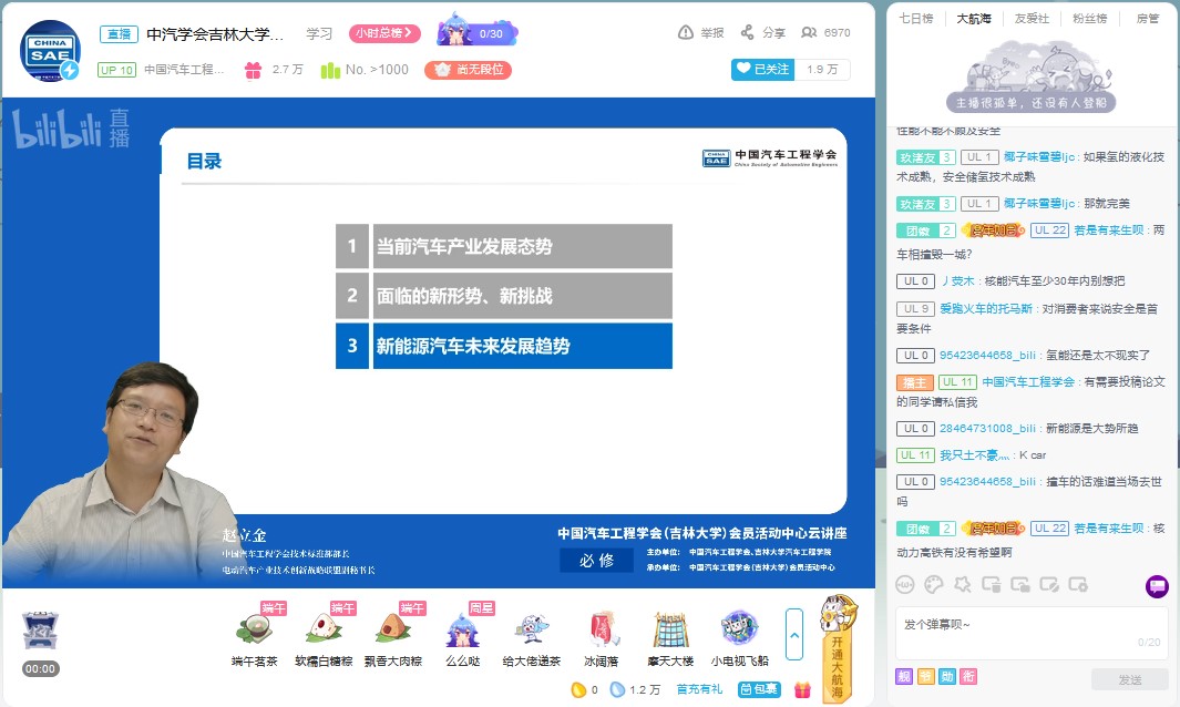 为帮助员工拓展视野,明确发展方向,树立正确的就业观。6月18日下午,由中国汽车工程学会、云顶7610线路检测主办,中国汽车工程学会(云顶7610线路检测)会员活动中心承办的“新能源汽车发展趋势”云讲座在bilibili“中国汽车工程学会”的直播间进行。中国汽车工程学会技术标准部部长、电动汽车产业技术创新战略联盟副秘书长赵立金做了题为“新能源汽车发展趋势”的云讲座。讲座由云顶7610线路检测员工工作办公室主任吴昊主持。
