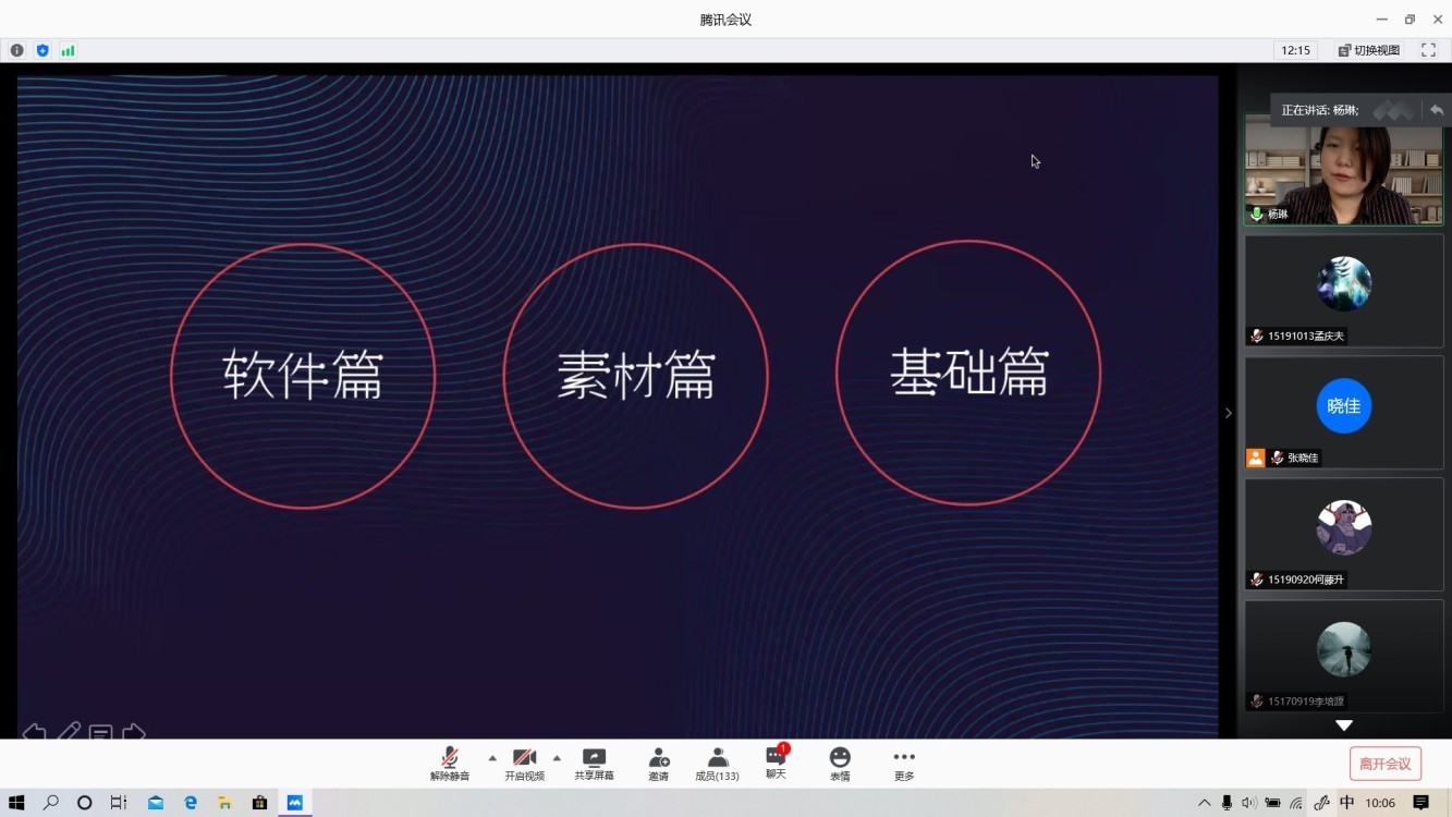 讲座中,杨琳分软件篇、素材篇和基础篇三个部分细致地讲授了PPT的制作要领。在软件篇中,杨老师讲解了PowerPoint基本功能,并解释了PPTX和PDF文件格式的区别。在素材篇中,杨老师用较大篇幅强调了素材积累的重要性,并细致地讲述了PPT图片、图标素材的积累技巧,向我们推荐了一些常用的素材收集网站。在基础篇中,杨老师以一份毕业答辩PPT模板为例,详细地讲授了PPT的制作技巧以及在制作中我们要注意的细节。此外,对于不同场合的PPT设计,杨老师也给出了相应的应对方法。
