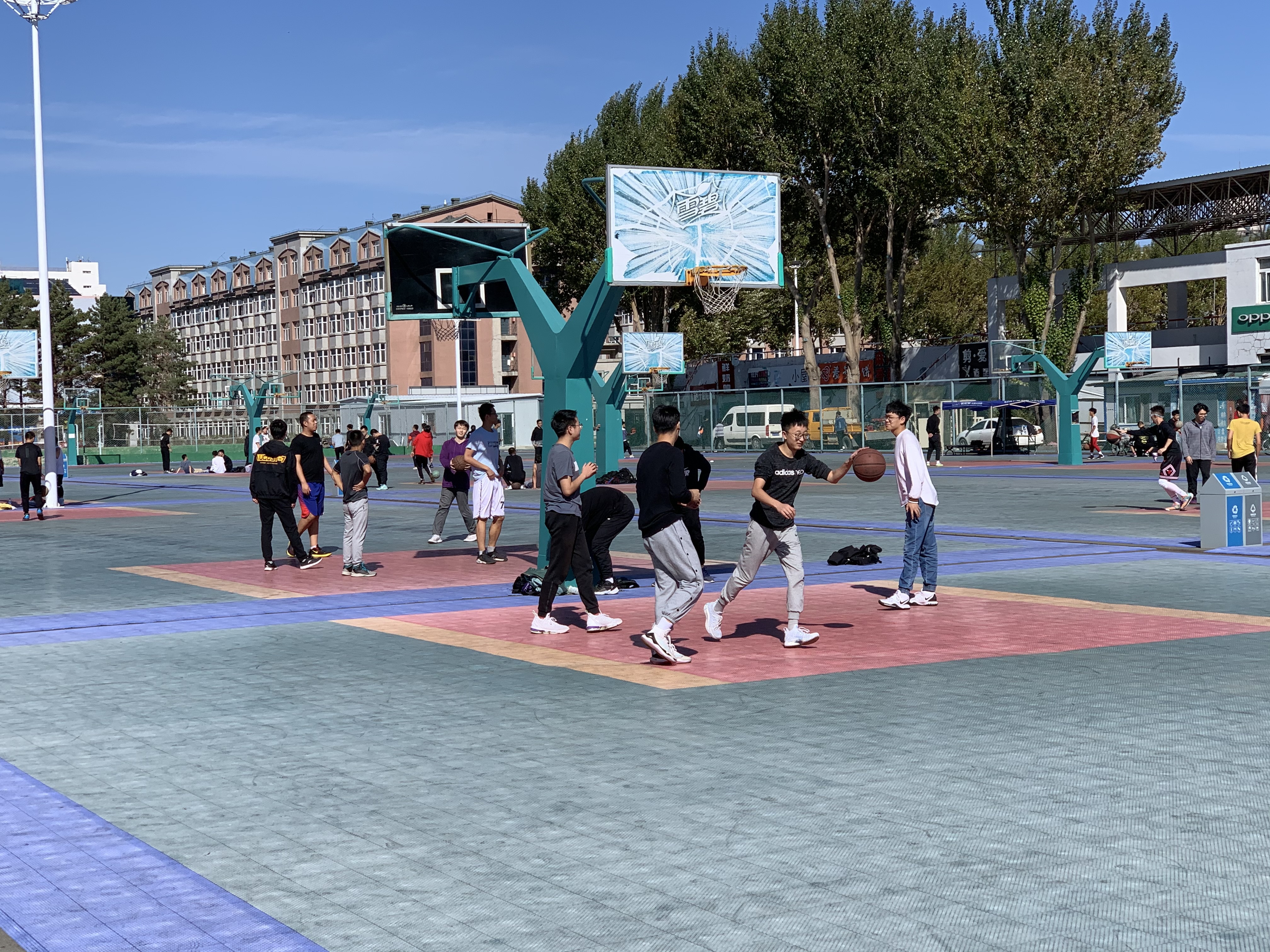 今天的参加比赛的队伍是十七支篮球小队经历了第一天的竞争后留下的胜利者,每支队伍的实力都可谓高深莫测,都在朝着冠军的目标全力以赴。队员们在场上时而进攻,时而防守,灵活转换,丝毫没有一丝懈怠,展示出了篮球运动员的优秀素质。教练在场下运筹帷幄,布置战术,向我们展现出了极高的篮球技术和团队配合默契意识,他们完美地诠释了富有凝聚力和感染力体育精神。最终“孙昊和他的四个替补队”、“国庆八连胜战队”等四支队伍获得晋级名额。