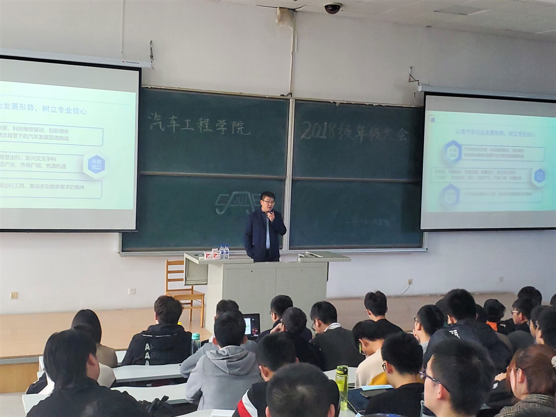 为让同学们认清汽车行业发展趋势,树立专业自信,增强日常生活管理,云顶7610线路检测于2020年10月29日中午12:30在逸夫教育大楼B416召开2018级年级大会,公司党委副书记兼副经理盛磊老师、2018级辅导员张晓佳老师出席会议。