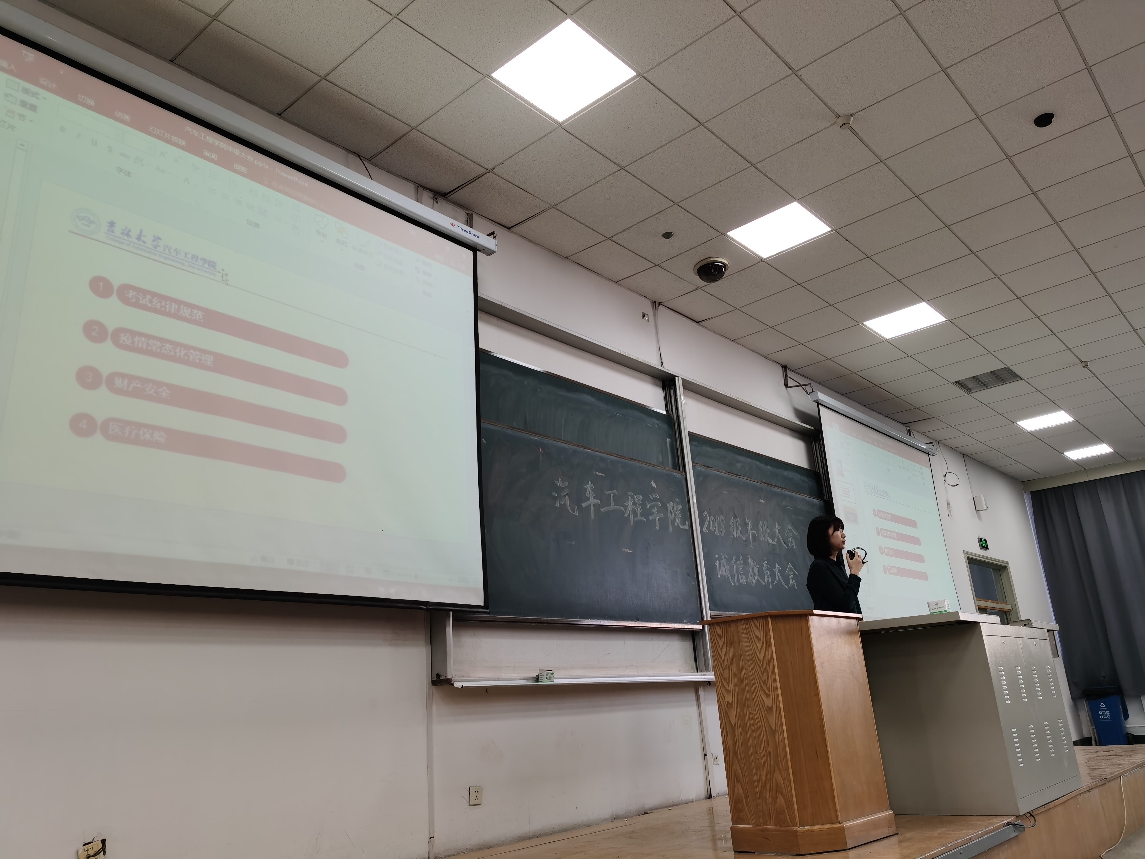 首先,张晓佳老师强调了考试的时间以及考场纪律,并指出了期末考试的重要性,告诫同学们都要严肃,认真地对待此次考试。随后,张老师针对最近频繁出现的诈骗现象,对同学们进行了网络安全教育,提醒同学们要保持警惕心理和自我安全意识,防止个人财产受到损害。最后,张老师告知同学们此次放假的时间和车队的工作安排,因疫情原因员工禁止留校,并对假期安全应注意的事项进行了说明。