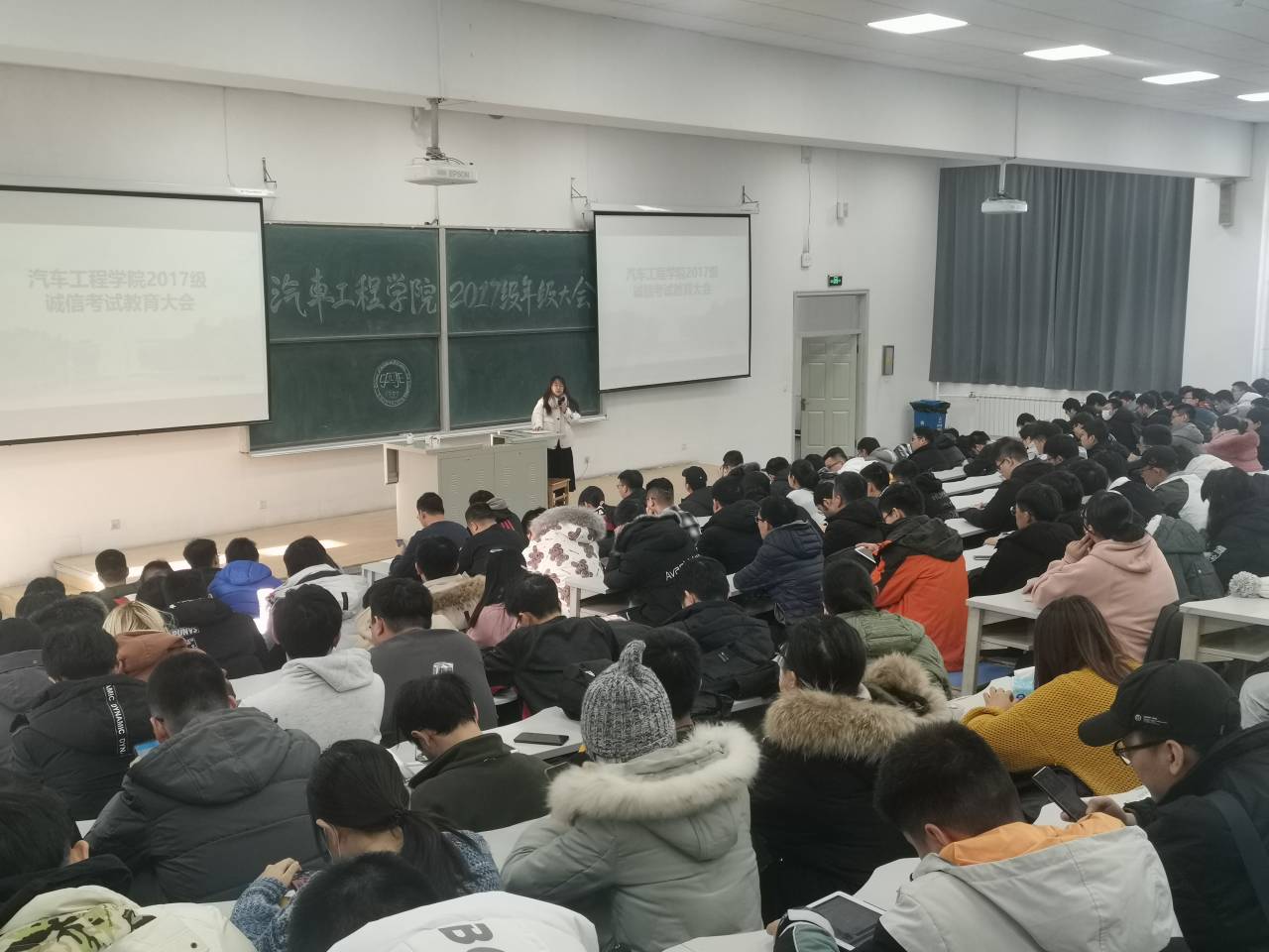 本次年级大会从诚信考试教育切入主题,李娇老师强调了考试的各项要求,其中格外强调了考试禁止作弊的要求,告诫各位同学认真对待考试,诚信考试。紧接着,李娇老师对员工日常打卡进行了叮嘱,并希望17级全体员工能全部准时完成每日健康打卡任务。随后,李老师又向同学们讲解了医保缴费的步骤以及寒假禁止留校等相关问题。最后,李娇老师说明了寒假的时间安排,希望各位同学能充分利用寒假时间。