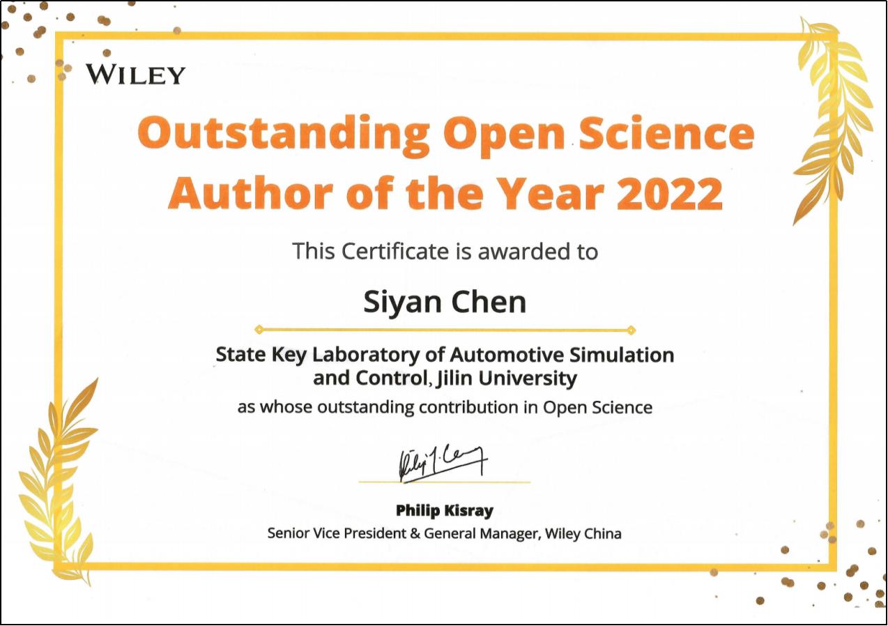 Wiley 2022年“Award of Outstanding Open Science Author”