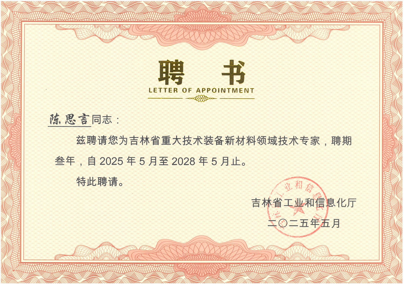 在员工指导与学科竞赛方面,指导研究生与本科生多次获得国家奖学金、学术业绩奖学金和本科生科研训练优秀项目。指导员工获得2024年“挑战杯”吉林省赛区金奖,全国赛区银奖(证书编号:220020015);2024年“中国国际老员工创新大赛”吉林省赛区金奖,全国赛区铜奖。