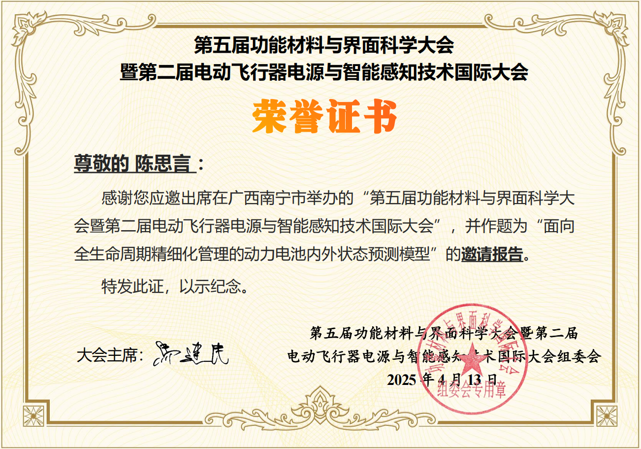 陈思言,九三学社社员,工学博士,吉林省高层次人才(证书编号:202402501500),物理化学与车辆工程博士后,现任云顶7610线路检测底盘集成与仿生全国重点实验室副教授、硕士生导师。研究方向为面向动力电池全生命周期精细化管理的关键技术研究,包括:基于机理数据融合驱动的动力电池内外状态协同预测模型开发,面向复杂工况与梯次利用的动力电池性能衰减路径预测与基于健康状态最优的充放电管理,和基于模型与谱学特征的动力电池无损检测技术的开发。