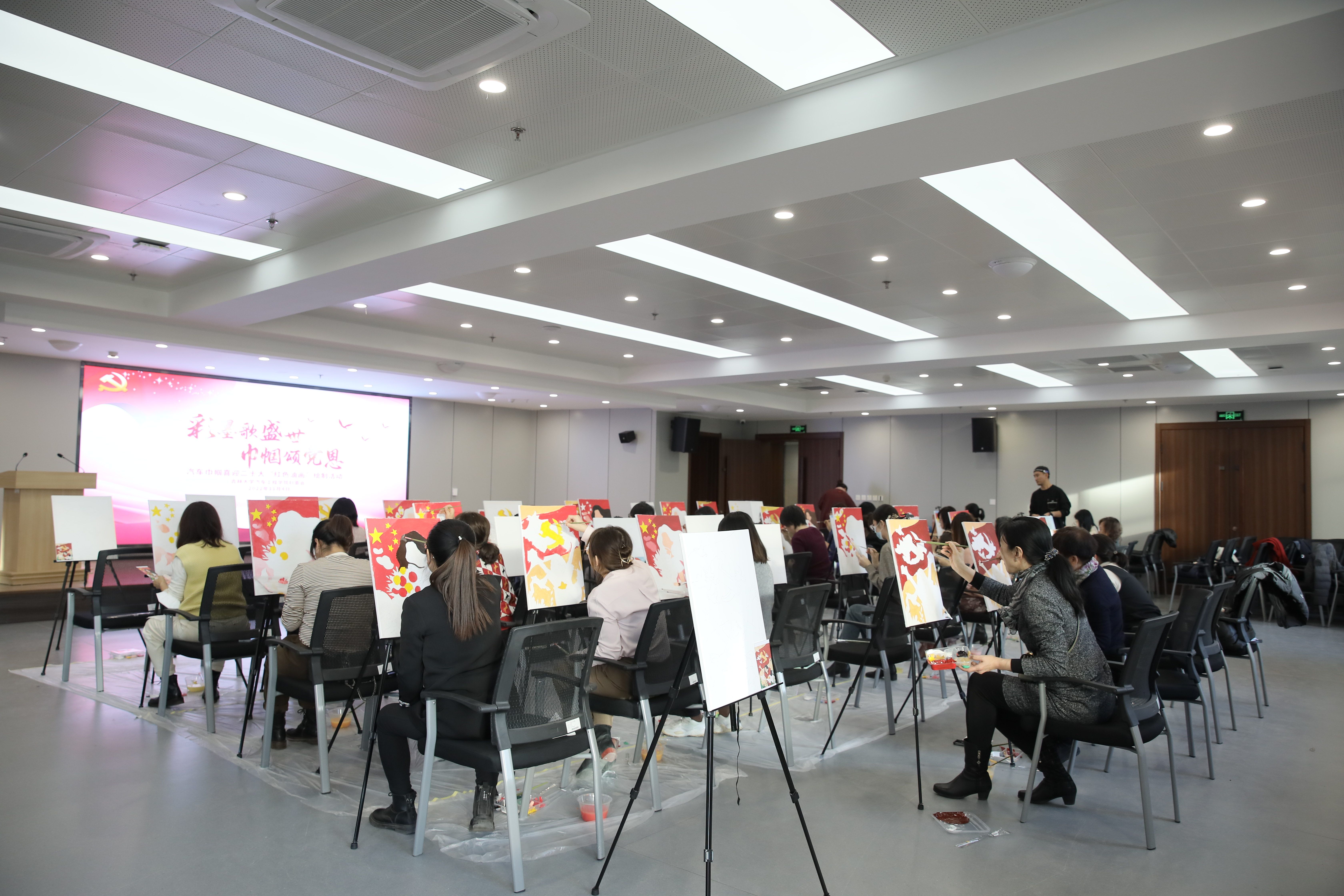 为庆祝党的二十大胜利召开,云顶7610线路检测妇委会于11月4日举办了“彩墨歌盛世,巾帼颂党恩”——汽车巾帼喜迎二十大“红色油画”绘制活动,旨在以活动强化思想引领,展现巾帼文化自信,通过挥洒彩墨抒发巾帼爱国情,通过笔下佳作诠释巾帼向党心。公司党委书记黄忠华、副书记胡忠巍、副经理林海兰以及女教职工参加了此次活动。活动由公司副经理、妇委会主任林海兰主持。